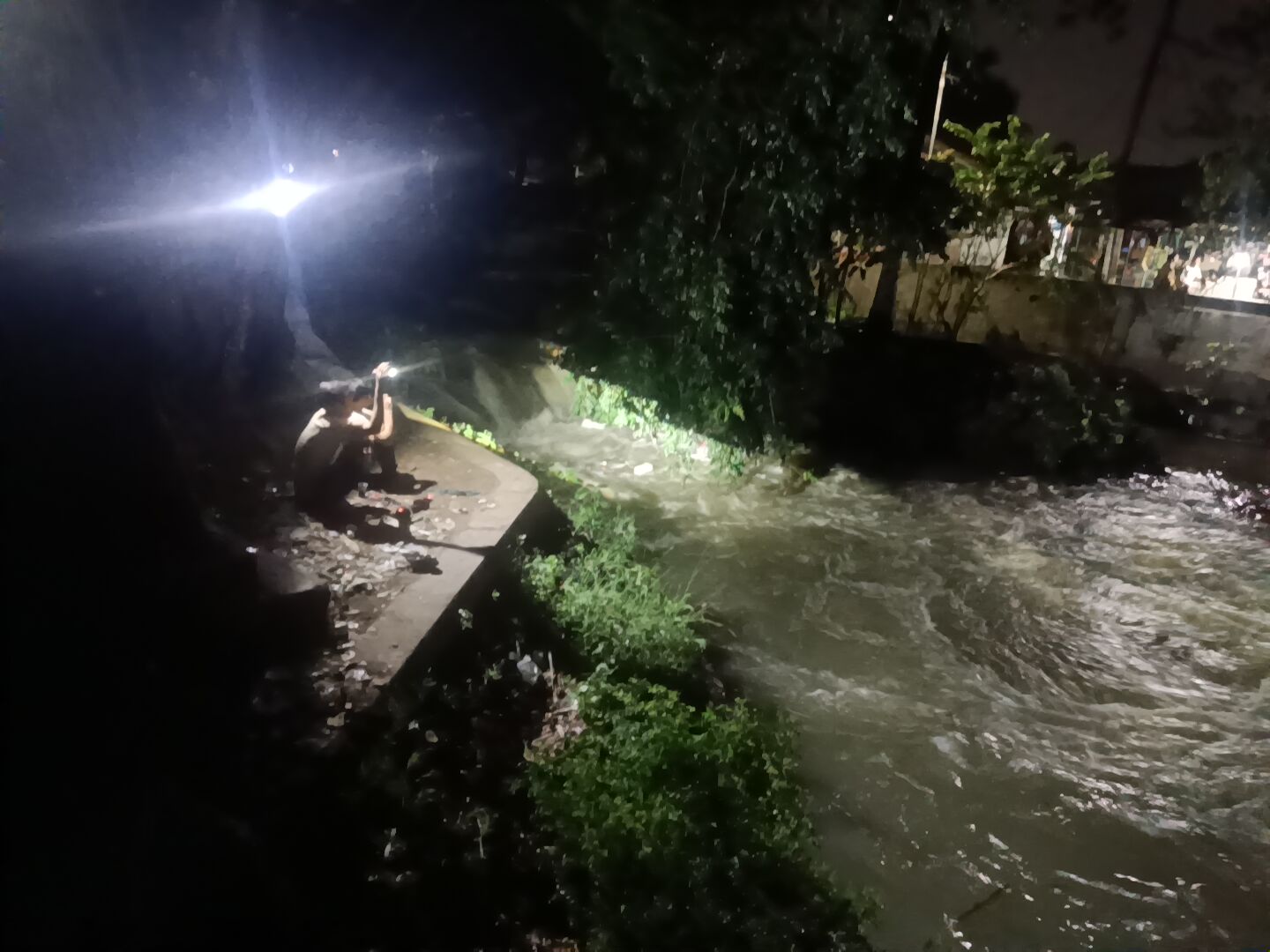 Peristiwa ini sontak membuat warga sekitar geger dan berkumpul di lokasi kejadian, sementara petugas terus menyisir aliran sungai untuk menemukan korban.