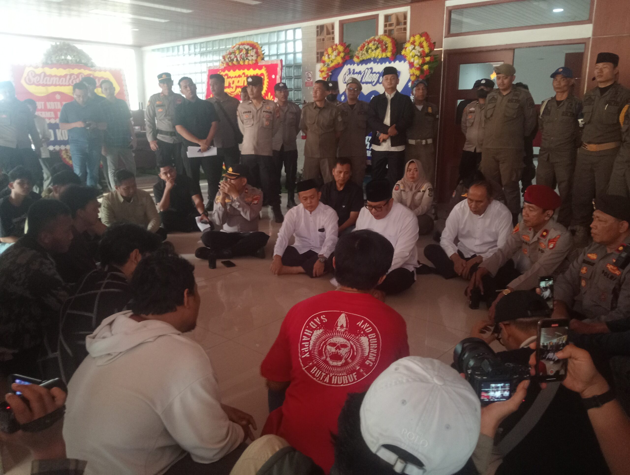 Aksi berlangsung dengan pengawalan aparat keamanan dan tetap berjalan kondusif hingga selesai, sementara rangkaian kegiatan HUT ke-33 Kota Tangerang tetap berlanjut sesuai agenda.